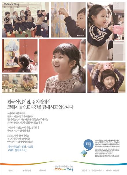 2014년 코웨이는 전국 1000여개 영유아 교육기관과 물쉼표 프로젝트의 첫 걸음을 떼었고 장기적인 관점에서 기업의 대표활동으로 육성할 계획을 가지고 있습니다.