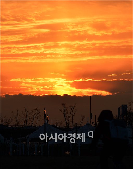 [아시아경제 윤동주 기자] 잔뜩 찌푸린 26일 서울 아침. 구름을 뚫고 솟아오르는 태양으로 하늘이 붉게 물들고 있다.