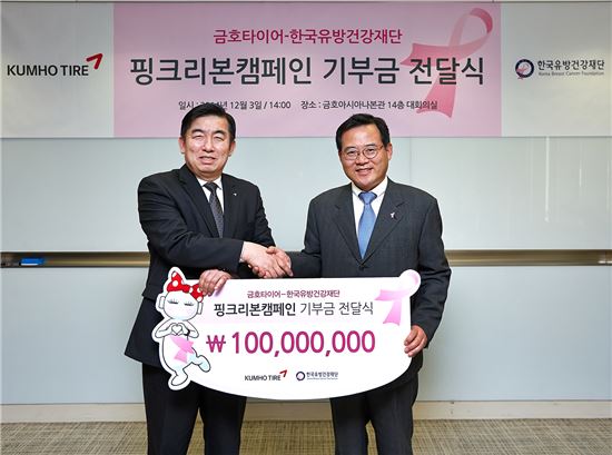 [아시아경제 임선태 기자]금호타이어는 3일 서울 종로 금호아시아나 본관에서 '핑크리본 캠페인 기부금 전달식'을 가졌다고 밝혔다.