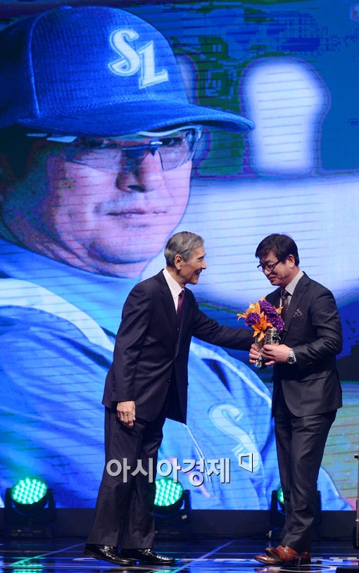 [아시아경제 김현민 기자] 2014 카스포인트 어워즈가 8일 서울 중구 동호로 신라호텔에서 열렸다. 삼성 류중일 감독이 최우수감독감을 수상하고 있다.