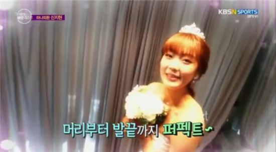13일 KBS N스포츠에서 방영된 바스켓W에서는 여자농구 차세대스타 신지현의 웨딩드레스 입은 모습이 공개됐다.