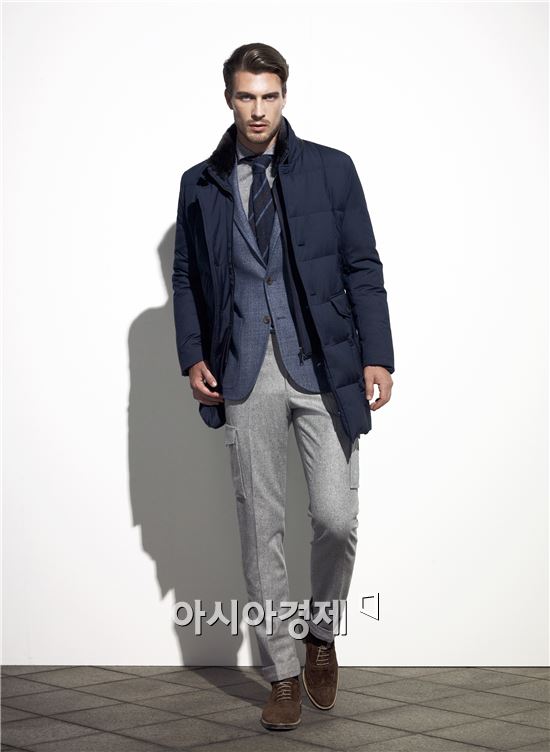 제일모직 남성복 브랜드 갤럭시의 이현정 디자인 실장은 "비즈니스 수트에는 너무 부피가 크고 캐주얼한 원색의 다운 점퍼를 착용하는 것보다 슬림한 다운 재킷을 선택하는 것을 추천한다"면서 "이때 색상 역시 네이비나 다크 그레이 등 무게감 있는 색상으로 한다면, 보온성과 격식 모두를 가질 수 있을 것"이라고 설명했다.