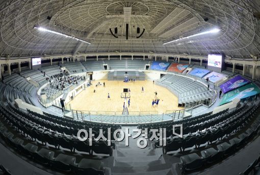 [아시아경제 백소아 기자] 15일 서울 중구 장충체육관에서 열린 장충체육관 개장 기자설명회에서 새로 단장한 모습을 선보이고 있다. 안전문제와 시설 개보수 요구로 2012년 5월 재보수 공사에 들어간 장충체육관은 오는 17일 2년 8개월만에 재개장 한다.