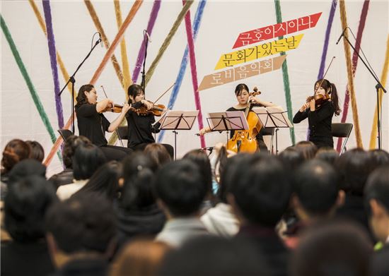 [아시아경제 황준호 기자] 금호아시아나그룹이 28일 저녁 6시 15분에 광화문 금호아시아나 사옥 1층 로비에서 2015년의 첫 번째 문화가 있는 날 '아름다운 로비음악회'를 개최한다.