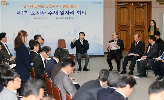 남 지사는 올해 경기도정의 첫 과제로 '일자리 창출'을 꼽았다. 이날 회의는 이 같은 남 지사의 의지에 따라 열렸다. 경기도는 앞으로 매월 1회 도지사 주재 일자리 회의를 개최한다. 남 지사는 회의에서 직접 일자리 창출 상황을 챙길 예정이다.