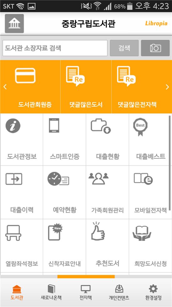 중랑구, 자료검색, 도서 대출 가능한 도서관 모바일 서비스