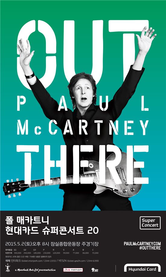 '현대카드 슈퍼콘서트 20 폴 매카트니(Paul McCartney)'는 2013년 브라질을 시작으로 18개월 동안 북미와 남미, 유럽 12개 나라에서 성황리에 펼쳐졌던 'Out There' 투어의 일환이다. 이 월드투어에서 폴 매카트니는 비틀즈와 윙스 시절의 히트곡부터 최신 앨범 '[New]' 수록곡까지 다양한 곡들을 선보였고, 200만명(총 64회)에 달하는 관객들이 공연의 감동을 나누었다. 이번 슈퍼콘서트 역시 폴 매카트니의 50년 음악 일대기를 한 곳에서 경험할 수 있는 국내 최초이자, 최고의 기회가 될 것으로 보인다.