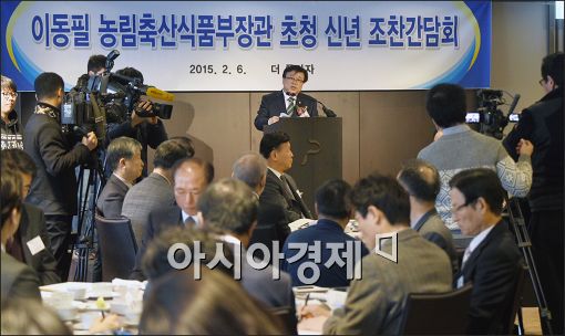[아시아경제 윤동주 기자] 이동필 농림축산식품부 장관이 6일 서울 중구 플라자호텔에서 열린 식품업계 CEO 조찬간담회에서 인사말을 하고 있다.