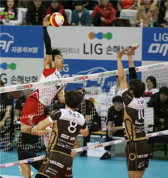 [아시아경제 김흥순 기자] 남자 프로배구 LIG손해보험이 갈 길 바쁜 OK저축은행의 발목을 잡았다.