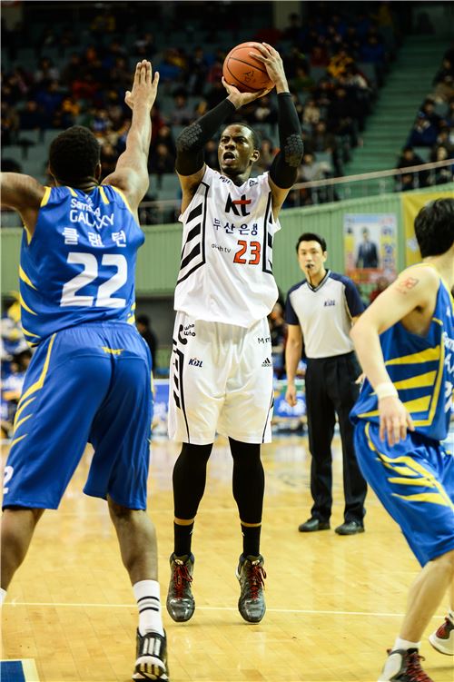 KT는 22일 잠실실내체육관에서 열린 2014~2015 KCC 프로농구 서울 삼성과의 6라운드 경기에서 73-61로 이겼다. 이날 승리로 시즌 전적 22승 28패를 기록, 단독 7위를 유지했다. 아울러 올 시즌 삼성과의 상대전적에서도 5승(1패)째를 거둬 강한 모습을 보였다.