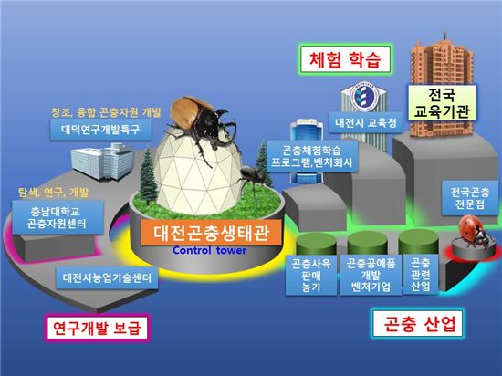 대전시는 대한민국 학습·애완곤충산업의 중심도시로 만든다는 청사진 아래 바탕마련, 산업화 촉진, 새 시장창출의 3대 전략 및 17개 중점과제 추진에 약 188억원을 들여 곤충산업 유통의 거점도시로 자리 잡는다.