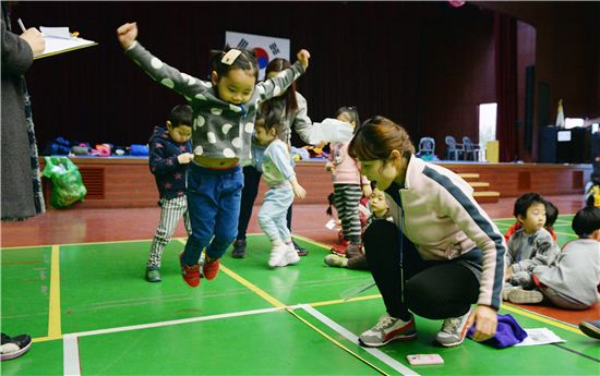 이날 체력검사는 사업 운영의 효과적인 평가를 위해 프로그램 참여 어린이 300여명을 대상으로 ▲제자리 멀리뛰기 ▲외발서기 ▲5m 왕복달리기 등을 측정했다.