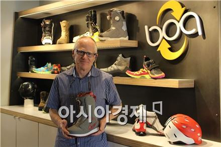 국내 대부분의 등산화 신제품은 이 시스템을 차용한다. 여러개의 구멍에 번갈아 끼워 동여매던 것에서 이제는 발등이나 옆에 부착된 다이얼을 돌리는 것으로 세대교체가 이뤄졌다. 이 다이얼과 끈을 통칭 '보아 시스템'이라 부른다. 혁신적인 아이디어 하나로 등산화 시장을 완전히 바꾼 예다. 이 시스템을 세계시장에 판매하는 보아테크놀러지의 최고경영자(CEO), 마크 소더버그를 인터뷰 했다.