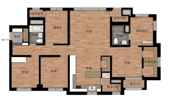 이밖에 채광과 환기에 유리하고 서비스면적을 늘리는 3면 발코니를 전체 555가구 가운데 40% 이상 적용할 예정이다. 또 취향에 따라 침실이나 펜트리(수납공간), 가족실 등으로 활용 가능한 선택형 평면이 도입된다. 주택형에 따라 안방에 취미공간이나 서재, 옷방으로 쓸 수 있는 멀티공간이 따로 마련된다.