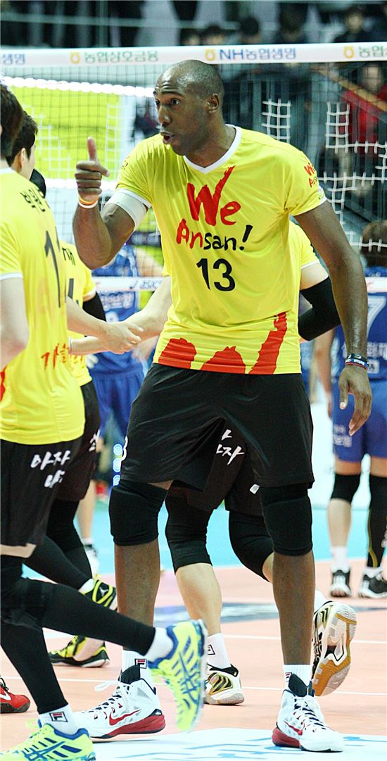 OK저축은행은 21일 안산 상록수체육관에서 열린 NH농협 2014-2015 V리그 남자부 플레이오프 1차전 홈경기에서 한국전력과 풀세트 접전 끝에 3-2(41-39 18-25 25-16 17-25 15-8)로 이겼다. 3전2선승제 시리즈의 첫 판을 따내며 창단 2년 만에 챔피언결정전에 오를 수 있는 유리한 고지를 점했다. 남자부는 2005년 프로출범 이후 열 차례 열린 플레이오프에서 1차전 승리 팀이 아홉 차례 챔피언결정전에 진출했다.