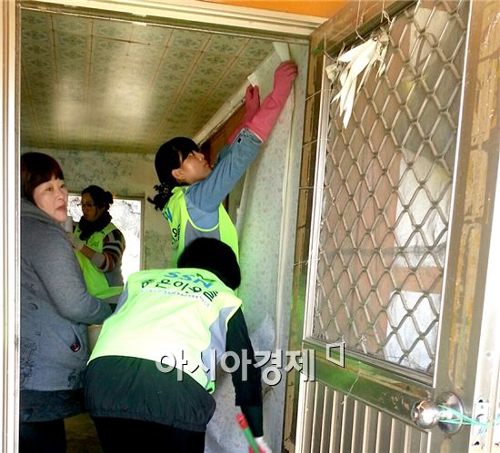 함평군희망복지지원단, 사회복지협의회 ‘좋은 이웃들’봉사단, 주부교실 회원 등 15명은 집 안팎을 청소하고 도배와 장판을 교체해 단장했다.