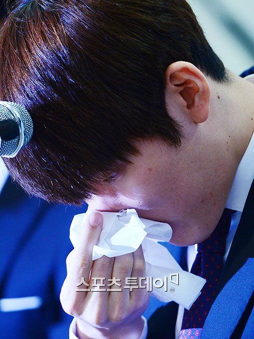 사과문을 읽어가던 박태환은 감정이 북받치는 듯 터져나오는 울음을 막지 못했다. 그는 "2004년 처음 태극마크를 단 순간부터 지금까지 단 한번도 약물에 의존하거나 훈련 이외에 다른 방법을 생각해본 적이 없다. 지난 10년간 모든 영광들이 물거품이 되고 모든 노력들이 약쟁이로…"까지 말한 후 눈물을 훔치느라 한동안 말을 잇지 못했다.