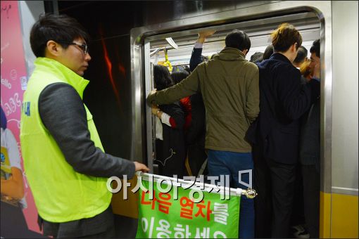 [아시아경제 윤동주 기자] 지하철 9호선 2단계 구간 개통 후 첫 출근길을 맞은 30일 서울 강서구 염창역에서 출발하는 급행 열차에 승객들이 오르고 있다.