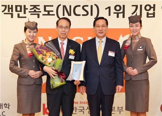 한국생산성본부가 실시한 2015년 NCSI(국가고객만족도) 조사는 최근 1년 사이에 동일 항공사를 편도기준으로 4회 이상 이용한 만 20세 이상 59세 이하 남녀 고객 250여명을 대상으로 실시됐다.