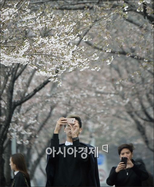 [아시아경제 윤동주 기자] 여의도 벚꽃축제를 앞두고 3일 서울 여의도 운중로 일대에 개화하기 시작한 매화와 벚꽃, 살구꽃을 한 시민이 사진을 찍고 있다.