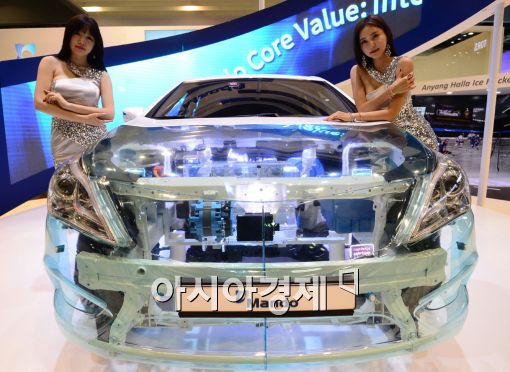 [아시아경제 백소아 기자] 2015 서울모터쇼가 시작된 3일 경기도 고양시 킨텍스에서 자동차 부품기업 만도가 제동시스템, 조향시스템, 현가시스템, DAS 기술(운전자 편의 시스템)을 포함한 전시물을 선보이고 있다. 역대 최대 규모인 32개 완성차 브랜드가 참가해 350여대의 차량이 전시되는 2015 서울모터쇼는 12일까지 열흘간 진행된다.