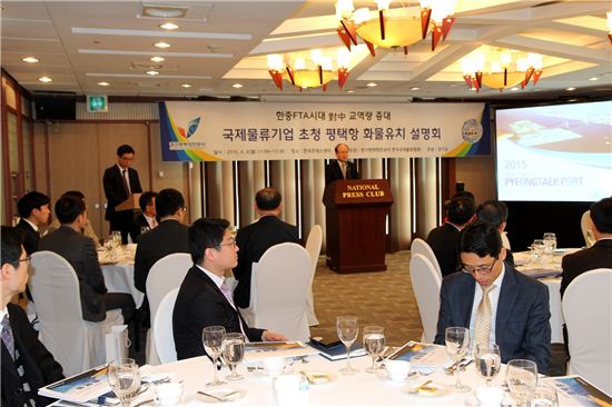 경기평택항만공사는 6일 한국국제물류협회와 공동으로 서울 소공동 프레스센터에서 국제물류기업 CEO(최고경영자) 및 임직원을 초청해 평택항 화물유치 설명회를 개최했다. 이날 설명회에는 현대로지스틱스, 한솔로지스틱스, CJ대한통운, KCTC, 대우로지스틱스 등 물류기업 임직원 100여명이 참석했다.