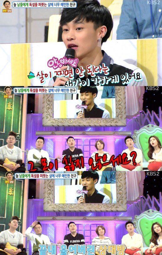 그녀는 키 183㎝에 몸무게 62㎏인 남성 친구가 있는데 살찌는 걸 싫어해 하루에 한 끼만 먹는다고 소개했다. 이어 자신에게도 "네 몸을 봐. 언젠가는 터지겠지"라고 구박한다고 털어놨다.