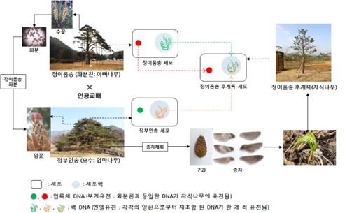 국립과천과학관은 정이품송의 후계목의 유전자 분석을 실시한 결과 엽록체 DNA가 정이품송의 것과 동일하고 핵DNA는 정이품송과 정부인송으로부터 받은 고유의 DNA 표지를 모두 갖고 있어 자식 나무가 확인됐다고 설명했다.