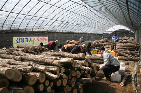 파주시산림조합은 파주시 적성면에 있는 유영묵(78·표고버섯 7동) 씨의 표고버섯재배사와 주변 재배임가 등지에 파주시산림조합 지도원 모두가 나가 참나무 표고목 구멍 뚫기와 표고버섯 종균 넣기를 했다.