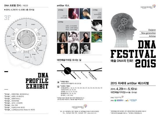 ‘DNA Festival 2015’는 대전문화재단의 지역신진예술가 발굴프로그램 ‘차세대 아티스타(artiStar) 지원사업’ 3년차를 맞아 2년간의 도움이 끝난 차세대 artiStar 1기(2013~2014년) 후속지원프로그램이다. 이는 artiStar 1기들(10명)의 발전된 능력을 살펴볼 수 있는 종합성과보고의 자리다.