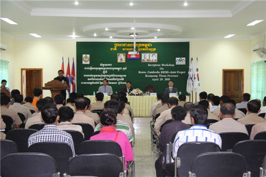 이를 위해 산림청은 29일 캄보디아 중부 캄풍톰 주에서 쳉킴순 캄보디아 산림청장 등 두 나라 대표단이 참석한 가운데 기후변화 대응(REDD+) 시범사업 착수보고회를 가졌다.