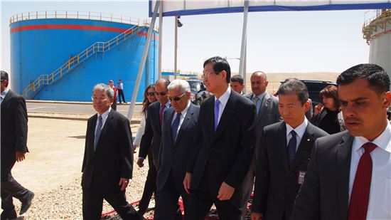 한국전력은 지난 30일(현지시간) 요르단에서 2번째 화력발전소인 암만아시아 발전소를 준공했다. 조환익 한전 사장(사진 가운데)과 압둘라 은수르(사진 왼쪽 세번째) 요르단 총리가 발전소를 둘러보고 있다.
