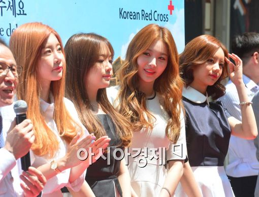 [아시아경제 백소아 기자] 21일 서울 중구 명동 예술극장 앞에서 걸그룹 걸스데이가 네팔 지진 이재민 돕기 '잔해 속 아이를 구해주세요' 프로모션을 하고 있다.