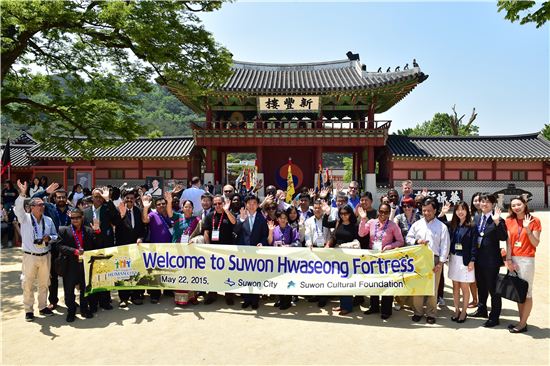 [아시아경제(수원)=이영규 기자] 인천 송도에서 열린 세계 최대 규모의 교육국제회의 '2015 세계교육포럼'에 참석한 30여개국 교육리더 30여명이 22일 수원화성 및 화성행궁을 방문했다.