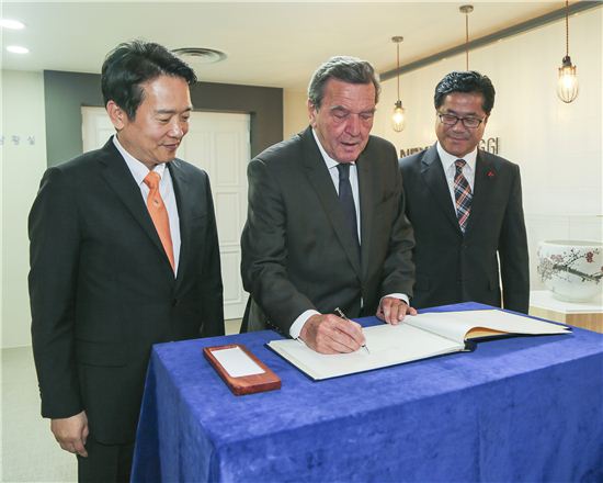 28일 경기도에 따르면 도는 민선 6기 1주년을 맞아 도정 핵심 브랜드인 '경기연정'에 대한 발전 방안을 모색하기 위해 지난 22일 슈뢰더 전 총리를 초청했다.