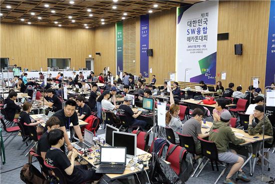 [아시아경제(수원)=이영규 기자] 42.195시간동안 잠자지 않고, 아이디어를 기획하고 프로그래밍을 거쳐 다양한 소프트웨어를 개발하는 국내 최초 '대한민국 SW융합 해카톤 대회'가 사흘간의 일정을 마치고 지난달 31일 폐막됐다.