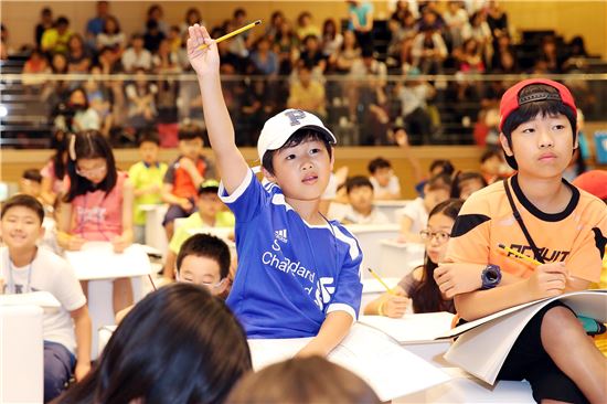 스탠다드차타드은행은 지난 달 31일 서울 종로구 스탠다드차타드은행 본점에서 개최한 제1차 ‘착한미술관’ 행사에 참여한 어린이가 스케치북에 그린 그림 내용을 발표하고 있다.