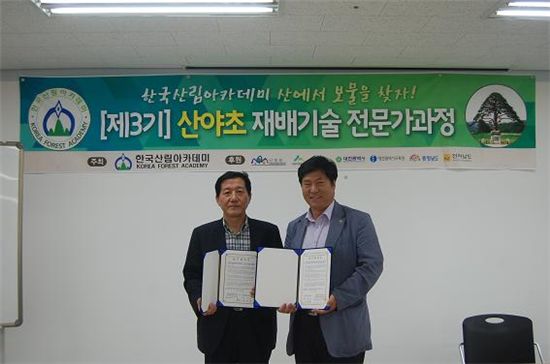 한국산림아카데미 산야초재배기술전문가과정 3기 재학생들이 참석한 협약식에선 안진찬 한국산림아카데미 원장과 안인 친환경농식품자재수출마케팅협동조합 전무이사가 이런 내용들이 담긴 협약서에 서명했다.