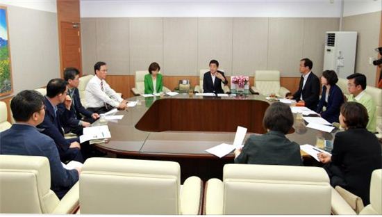 7일 도의회에 따르면 강득구 의장과 김유임 부의장, 새정치민주연합 김현삼 대표, 새누리당 이승철 대표, 보건복지위원회 원미정 위원장은 이날 오후 4시 의장 집무실에서 긴급 회동을 갖고 메르스 확산방지를 위한 긴급 임시회를 오는 9일 오후 2시에 개최하기로 합의했다.