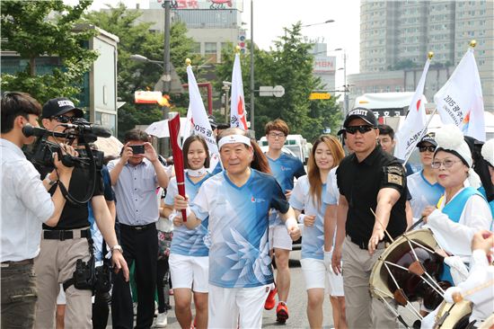 박홍섭 마포구청장 '2015 광주유니버시아드' 성화 봉송