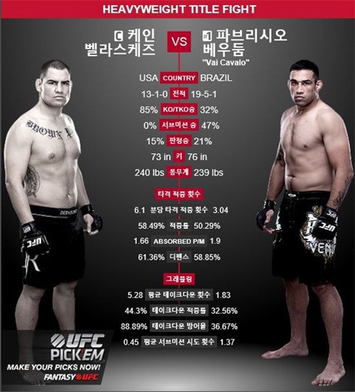 [아시아경제 온라인이슈팀] 파브리시오 베우둠(37·브라질)이 케인 벨라스케즈(32·미국)를 꺾고 UFC 헤비급 챔피언에 새로 등극했다.