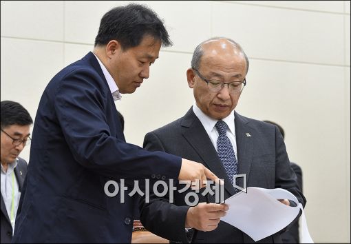 [아시아경제 윤동주 기자] 문형표 보건복지부 장관이 24일 서울 여의도 국회 복지위에서 열린 메르스 관련 법안 논의를 위한 전체회의에 출석, 관계자로부터 보고.