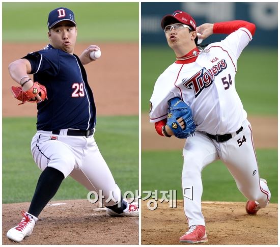 유희관과 양현종은 올 시즌 프로야구를 대표하는 왼손 선발투수다. 유희관은 올 시즌 열네 경기에서 94.2이닝을 던지며 10승 2패 평균자책점 2.85를 기록했다. 다승은 알프레도 피가로(31ㆍ삼성ㆍ14경기 10승 3패 평균자책점 3.41)와 공동 1위, 평균자책점과 최다이닝은 각각 2위와 4위다. 열네 차례 등판에서 퀄리티스타트(선발 6이닝 이상 투구 3자책점 이하 실점)는 열 번을 기록해 이 부문 공동 2위다.