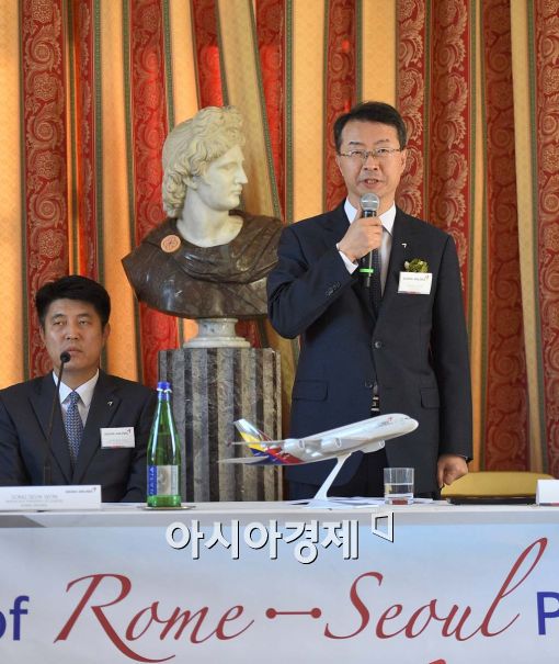 한편 이날 기자회견에 이어 열린 기념행사에는 김 사장과 이용준 주 이탈리아 대사, 로렌조 로 프레스티 로마공항공단장과 이탈리아 교민 등이 참석했다.