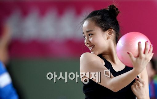 [광주=아시아경제 김현민 기자] '체조 요정' 손연재가 9일 광주여대 유니버시아드체육관에서 2015 광주하계유니버시아드 출전을 이틀 앞두고 훈련을 하고 있다.
