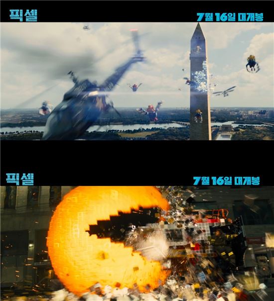 '픽셀'은 1980년대 유행한 게임 '팩맨' '갤러그', '스페이스 인베이더'의 캐릭터를 주인공으로 내세운 영화다. 추억 속 아케이드 게임의 유명 캐릭터를 외계인으로 설정해 주인공으로 배치한 기발한 시도가 관심을 끈다.