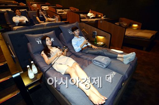 [아시아경제 최우창 기자] 템퍼 코리아와 CGV가 22일 서울 강남구 압구정 CGV에서 무중력의 편안함을 느낄 수 있는 침대 영화관 '템퍼 시네미'를 오픈한 가운데 모델들이 시연하고 있다.