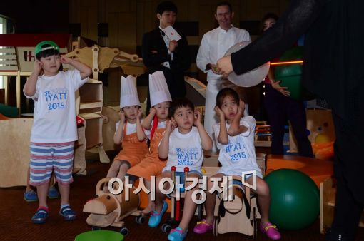 [아시아경제 백소아 기자] 24일 서울 용산구 그랜드 하얏트 호텔 내 서울 주니어 하얏트 라운지에서 어린이들이 신나는 키즈 프로그램을 체험하고 있다. 그랜드 하얏트 서울은 '펀타스틱 패밀리' 패키지를 이용하는 고객을 대상으로 키즈 쿠킹 클래스, 물로켓 쏘기, 키즈 성악 수업 등 다양한 키즈프로그램을 제공한다.