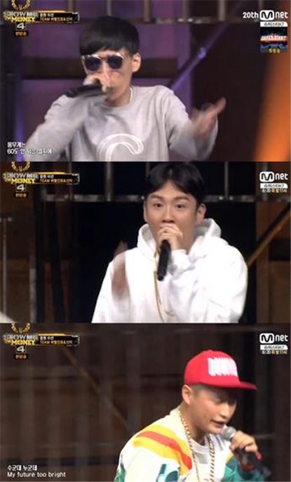 버벌진트·산이팀은 베이식, 마이크로닷, 블랙넛, 한해로 정해졌다. 이들은 하나의 비트로 무대를 완성했다.