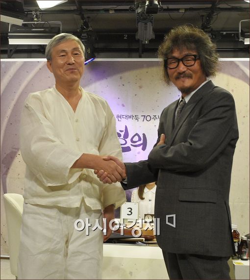 [아시아경제 윤동주 기자] 현대바둑 70주년을 기념해 26일 서울 성동구 한국기원에서 열린 조훈현, 조치훈 9단 특별대국이 열렸다. 대국 시작에 앞서 조훈현, 조치훈 9단이 인사를 나누고 있다.